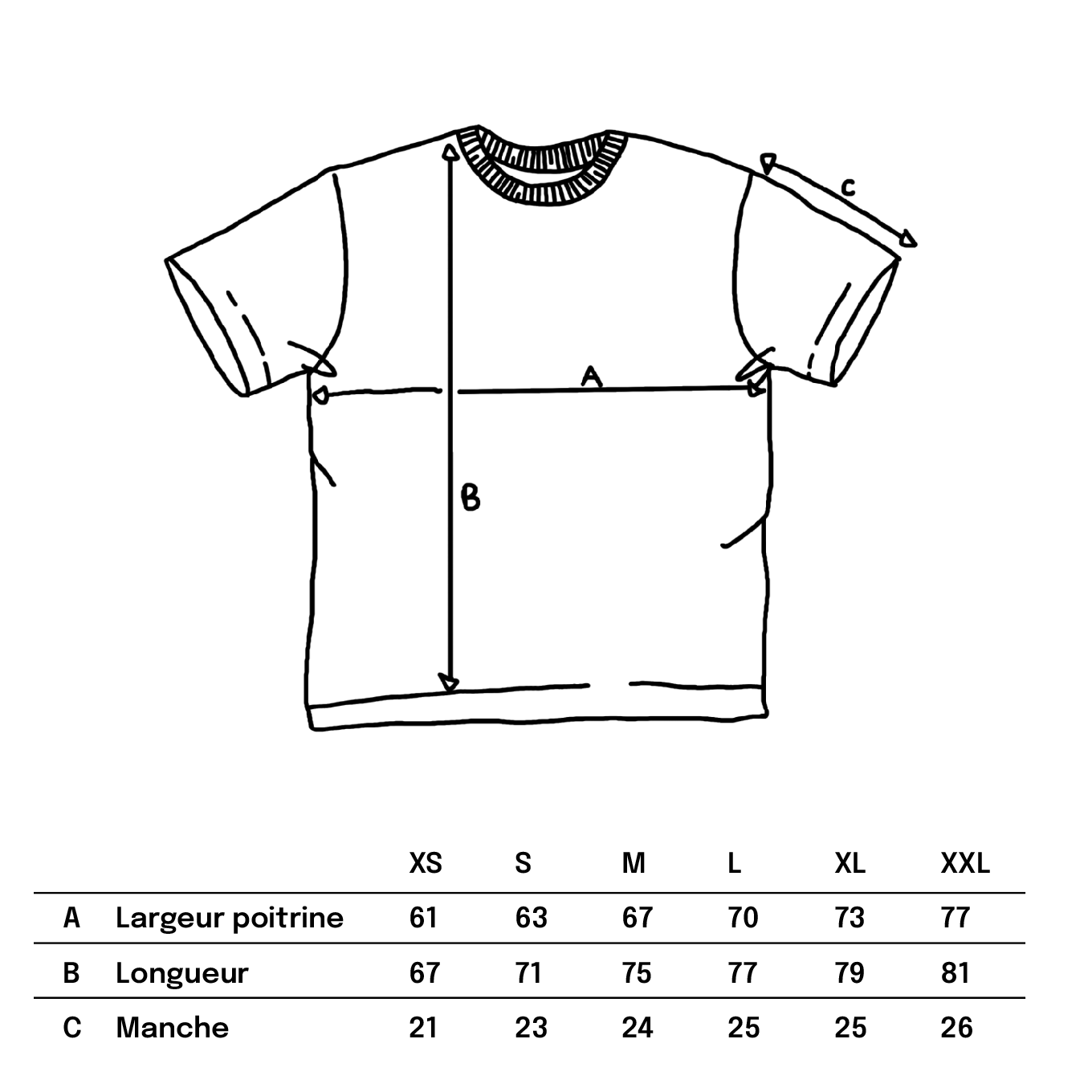 Coupe très oversize, on te recommande de prendre une taille en dessous de ta taille habituelle.